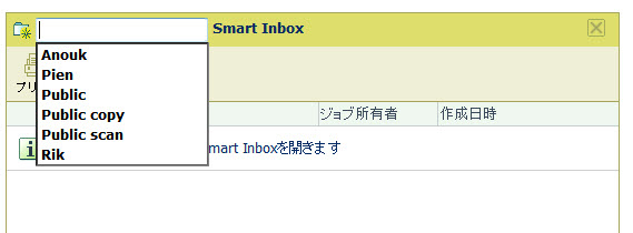[ワークフロー] セクションで Smart Inbox フィールドをクリックします。 1 つまたは複数のジョブが含まれた Smart Inboxes が表示されたドロップダウン リストが開きます。