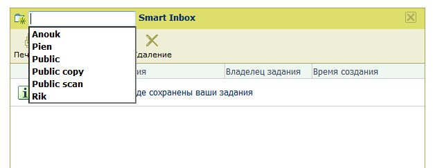 В разделе [Рабочая процедура] щелкните по полю Smart Inbox. Откроется ниспадающий список с Smart Inboxes, содержащим одно или более заданий. |