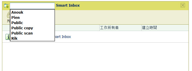 在[工作流程] 區段中按一下Smart Inbox欄位。 這時會開啟包含工作的 Smart Inboxes 下拉式清單。 |