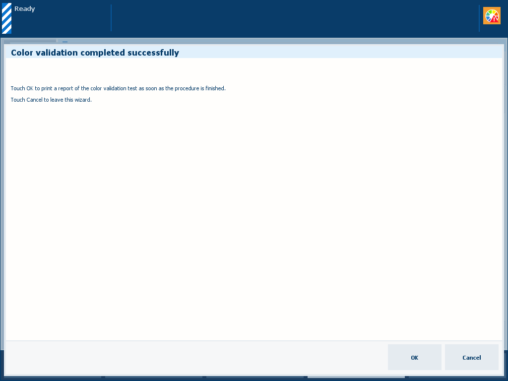 When you want to print a detailed report of the performed color validation test, touch [OK].