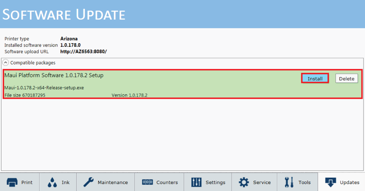 Du kan ladda ner och installera programuppdateringar när de är tillgängliga för din skrivare. Backoffice använder kommunikation via Remote Service för att släppa programuppdateringar.