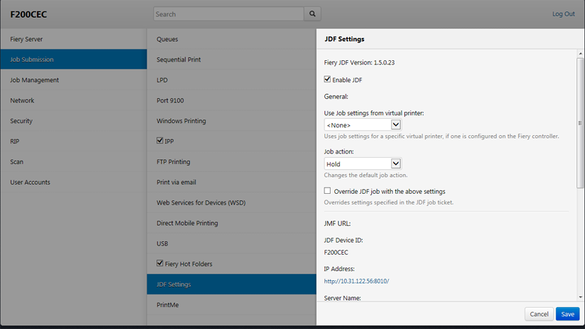 Klikk på "Jobbsending – JDF-innstillinger".