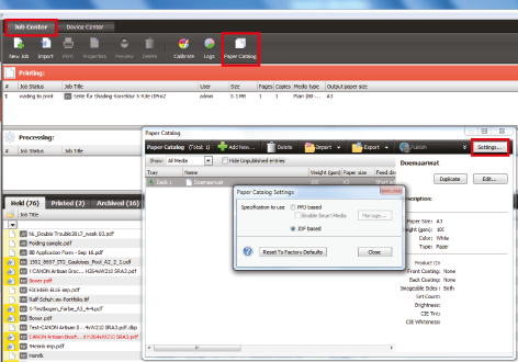 Klik på "Afsendelse af job – JDF-indstillinger".