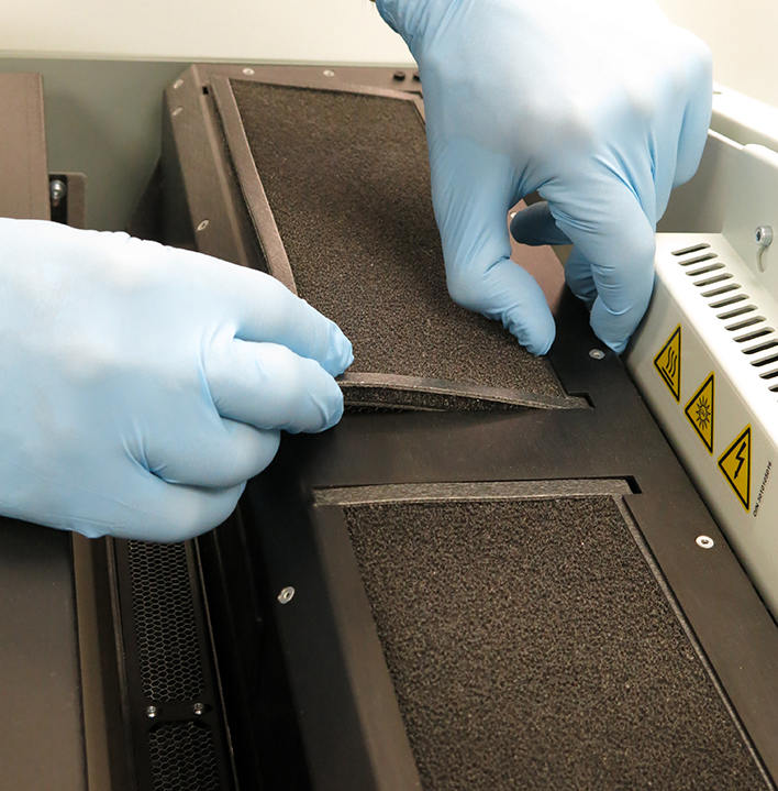 UV ランプの上部には、ほこりや空中の微粒子がランプが侵入するのを防ぐ 2 つのフィルターがあります。 フィルターにほこりや砕片が詰まると、ランプが過熱し、ランプに障害が発生する場合があります。