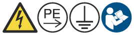 Sähkö: Varoitus. korkea kosketusvirta. Liitä maadoitusliitin maahan ennen laitteiston kytkemistä verkkovirtaan. Tutustu asennusohjeisiin ennen laitteiston käyttöä. |