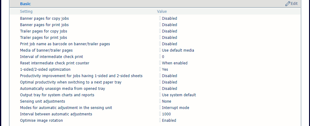 Když tisknete lícem nahoru a záhlavím dolů, pokud je přední strana listu v orientaci na šířku (LEF) nebo na výšku (SEF), listy se otočí o 180 stupňů. To má za následek otočení stránek vzhůru nohama. Pokud dokument obsahuje stránky na výšku i na šířku, některé listy ve výstupu mohou mít jinou orientaci než zbytek dokumentu. Chcete-li tento problém vyřešit, použijte nastavení [Optimalizovat otáčení obrazu] v aplikaci Settings Editor.