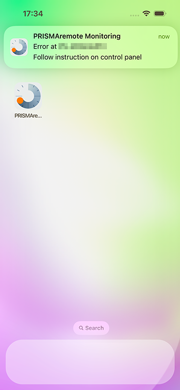 Lorsque [Toutes les notifications de PRISMAremote Monitoring] est activé dans l'écran des paramètres de notification, les notifications s'affichent.