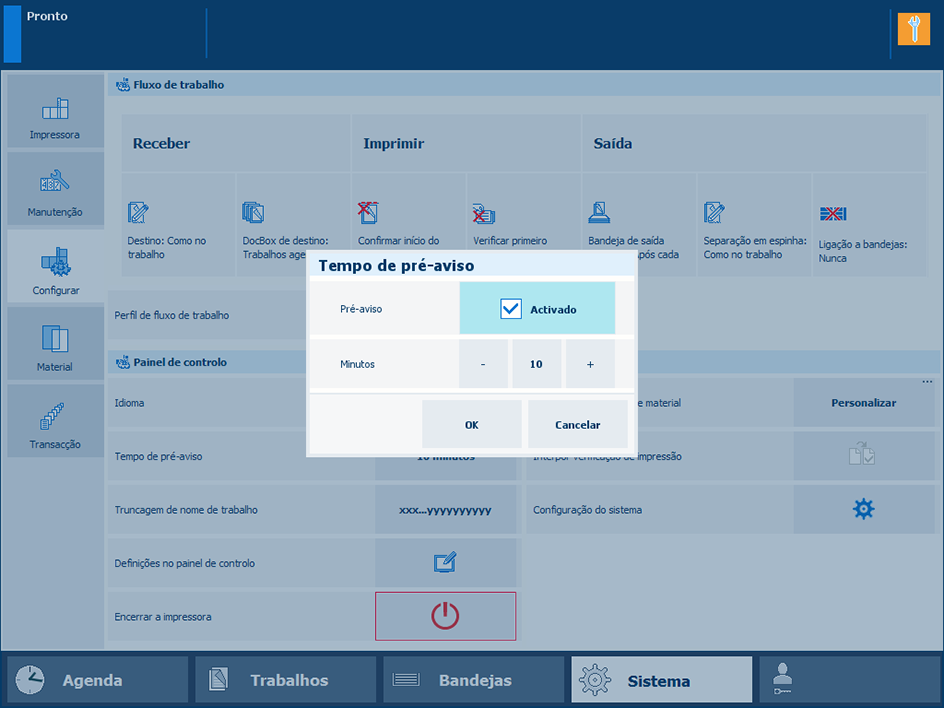 A definição [Tempo de pré-aviso] define quando a notificação relativa aos próximos eventos é enviada.