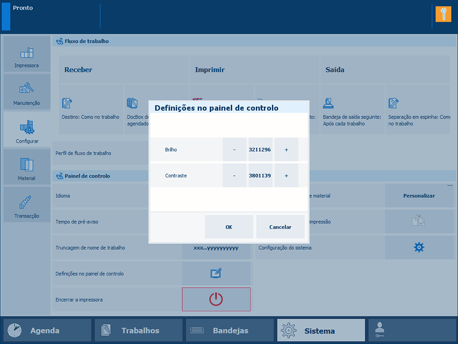 Toque em para aceder às definições de ajuste do painel de controlo.