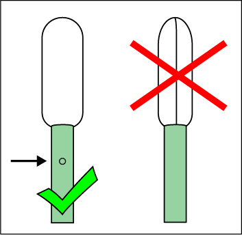 Ikke la sømmen på skummet på vattpinnen komme i kontakt med bunnen av skrivehodet. Dette kan skade skriverhodet. Se neste figur.