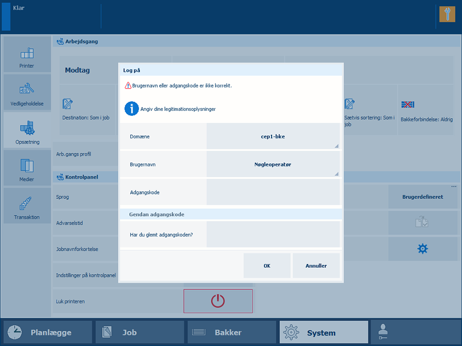 Sørg for, at din e-mail-adresse indgår i egenskaberne for din brugerkonto. Ellers skal adgangskoden ændres i indstillingerne for PRISMAsync Print Server-brugerkontoen. Hvis du ikke har rettigheder til at ændre indstillingerne for PRISMAsync Print Server-brugerkontoen, skal du angive din adgangskode til systemadministratoren.