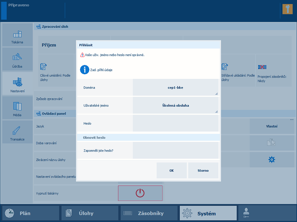 Obnovení hesla na ovládacím panelu