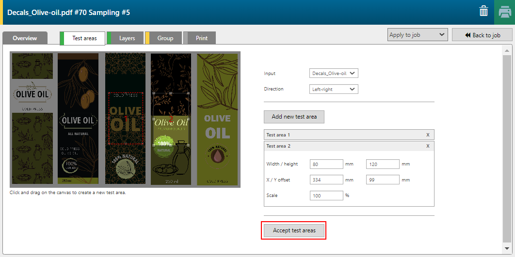 选择一个或多个测试区并单击 [接受测试区域] 。