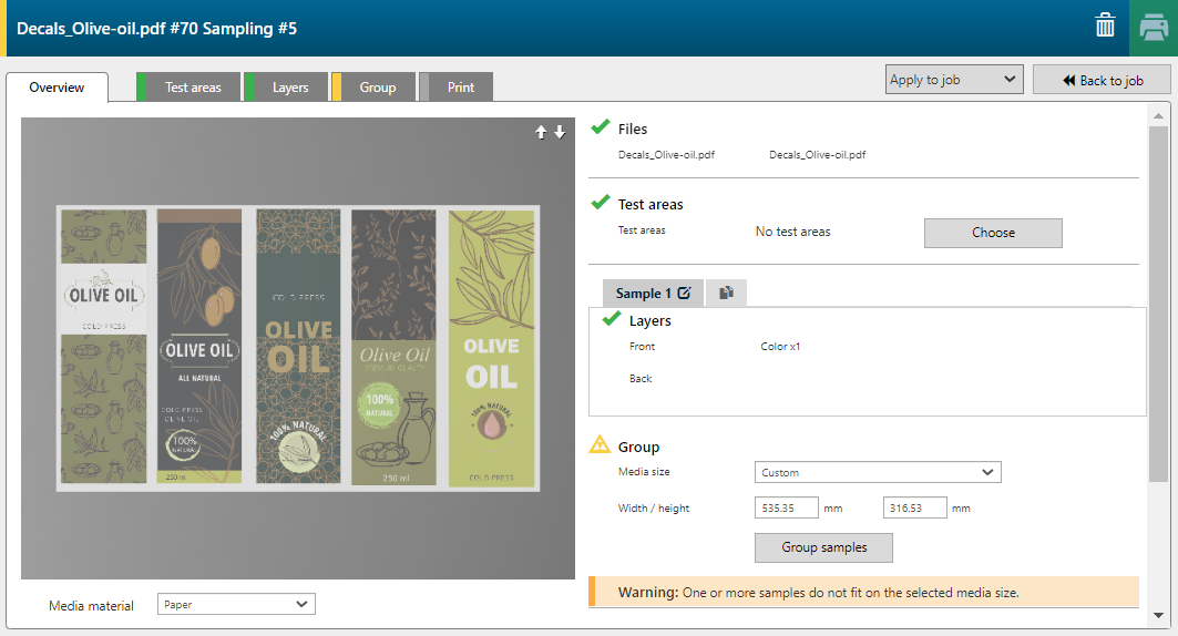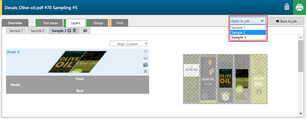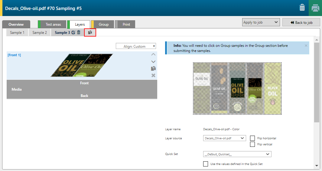 使用复制图标创建新样本。对于每个样本,您可以添加或删除图层并更改每个图层的打印设置。