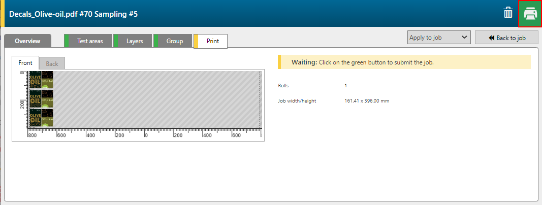 单击绿色的打印按钮将您的样本提交到 ONYX Thrive。