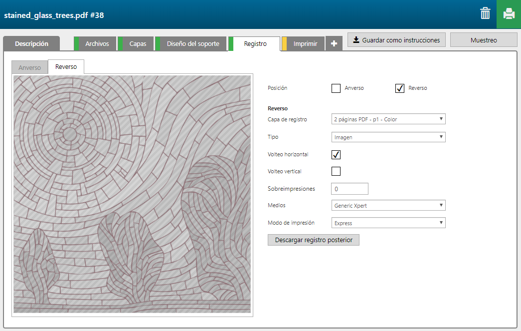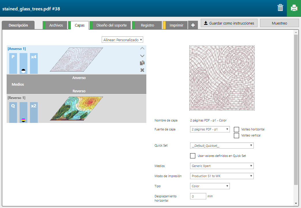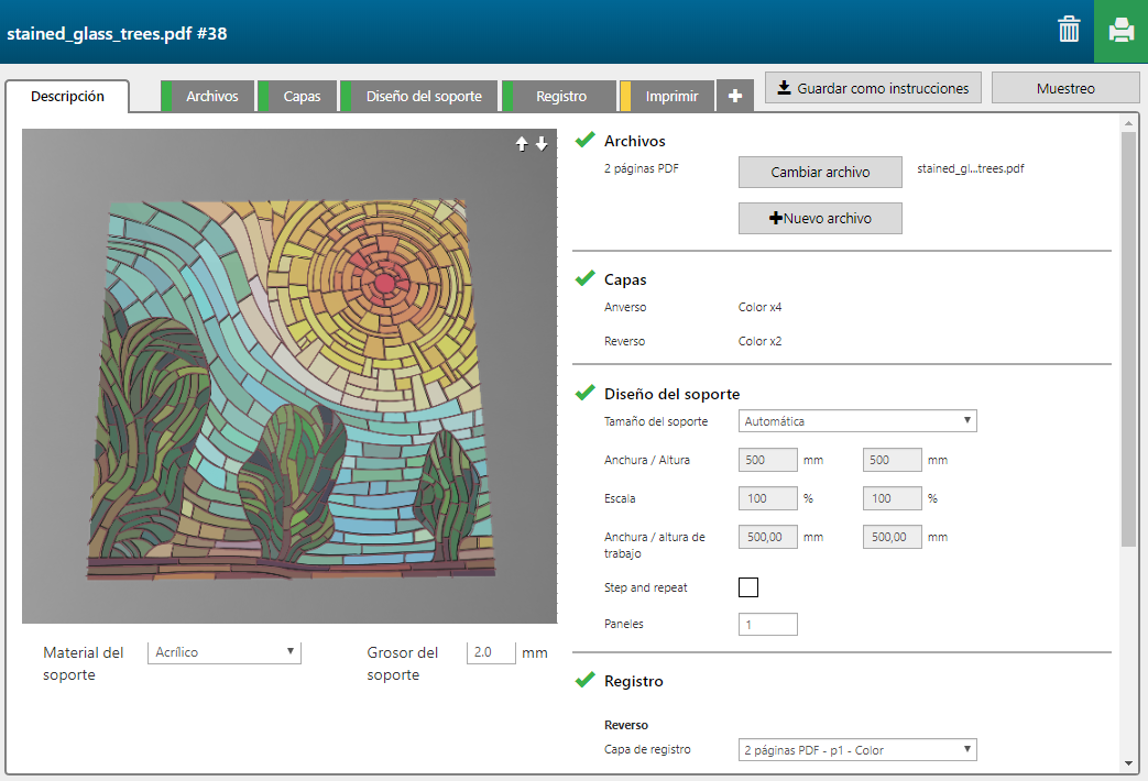 La fórmula 'Stained glass' consta de 6 capas: 4 impresa en el anverso del material y 2 impresas en el reverso.