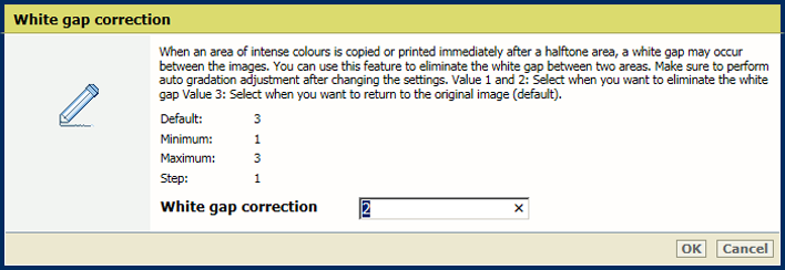 Utilize a definição [Correcção de espaço em branco] para ajustar o nível padrão da correção de espaço em branco.