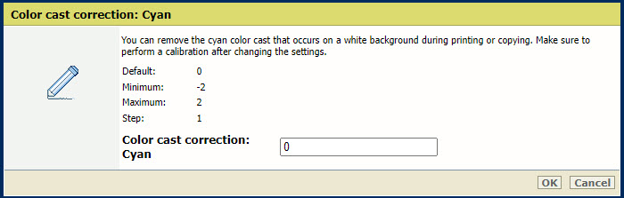 Utilize as definições [Correcção de matizes de cor: Ciano], [Correcção de matizes de cor: Magenta], [Correcção de matizes de cor: Amarelo] e [Correcção de matizes de cor: Preto] para ajustar o nível de correção padrão por cor.
