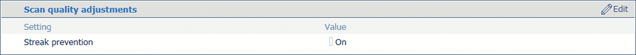 Paramètres pour les réglages de qualité de numérisationDésactivez le paramètre [Prévention des traces] pour numériser des documents avec des lignes extrêmement fines.