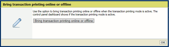 4. Click [Bring transaction printing online or offline] to put transaction printing offline.