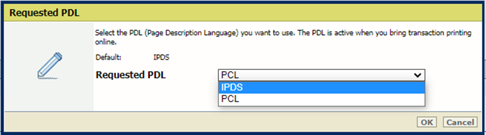 Only one transaction printing Page Description Language (PDL) can be active at the printer: IPDS or PCL.