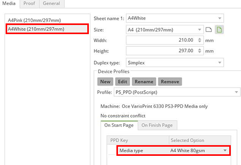 After printing the PostScript media type attributes are taken into account from the PPD file: