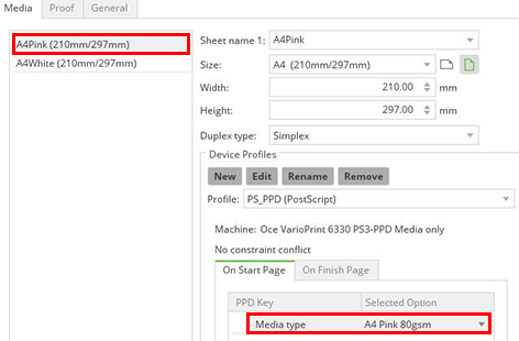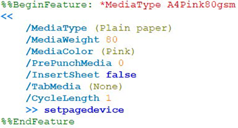 After printing the PostScript media type attributes are taken into account from the PPD file:
