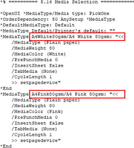 Example of a custom media definition in the PPD file: