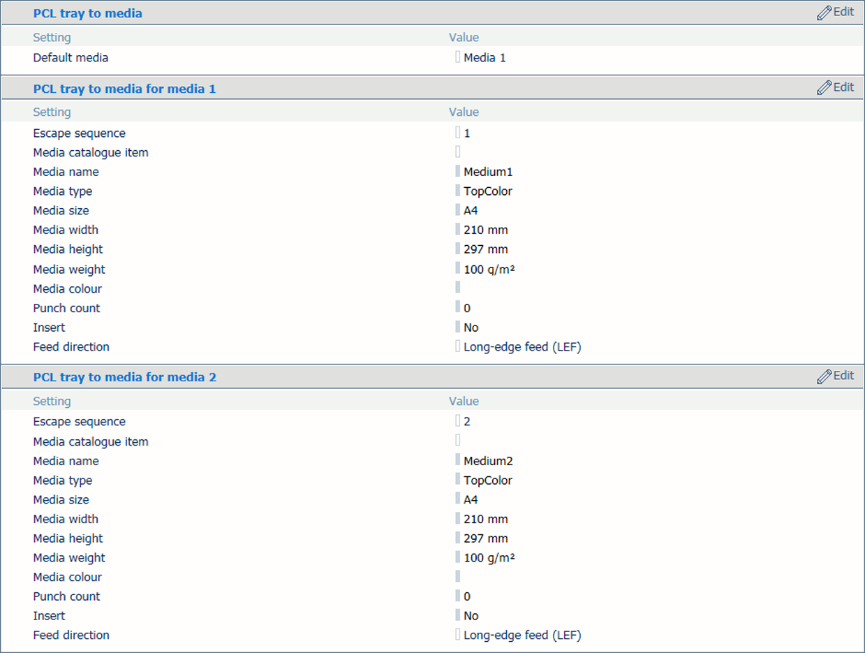 どちらのトレイマッピングモードでも、同じ用紙を含む物理トレイは自動的にリンクされます。これにより、参照先のトレイが空の場合、同じ用紙がセットされた他のトレイから印刷が続行されます。
