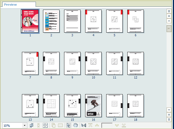 In the preview, all pages display full bleed tabs, except for the first three pages that are not part of a section. You can see this in the [Thumbnail pages view].