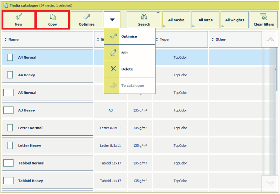 Materiaalin hallinta ohjauspaneelissaValitse [Kopioi], jos haluat käyttää jotakin materiaalimääritteistä aloituskohtana ja kopioida asetukset uusiksi materiaalimääritteiksi.