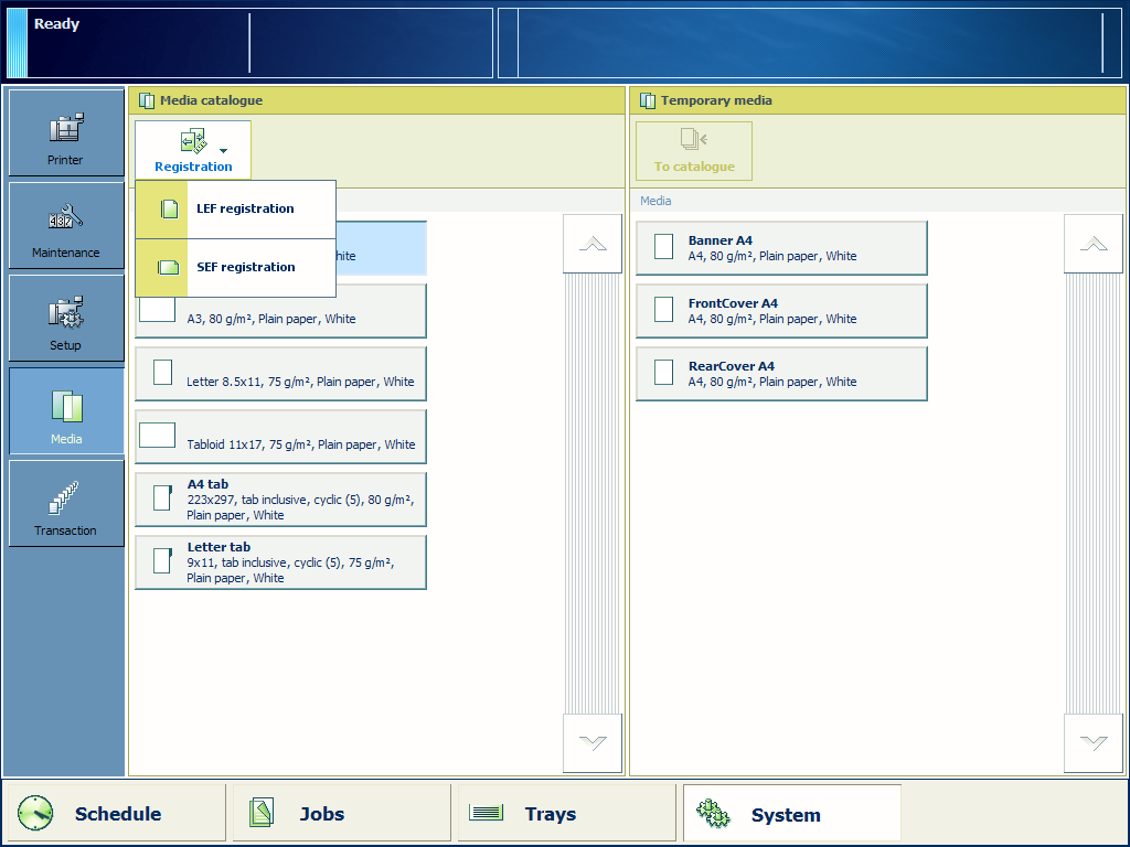 Trykk på [System] -> [Medier] på kontrollpanelet for å åpne mediekatalogen.