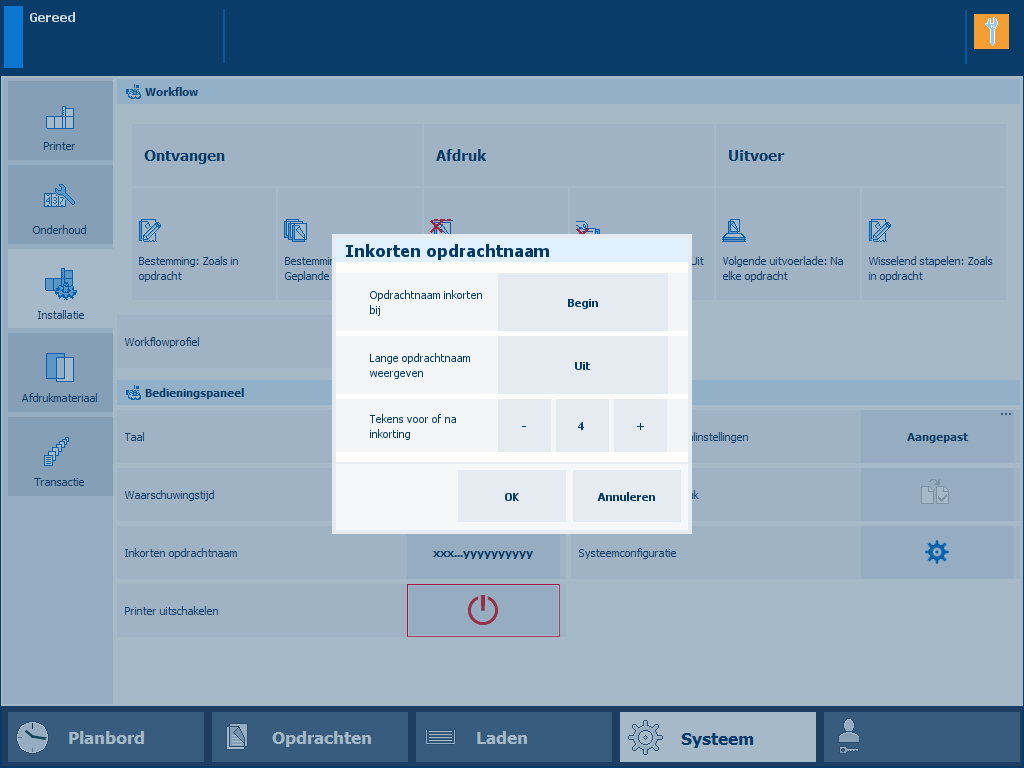 Geef aan hoe u de opdrachtnaam wilt inkorten.
