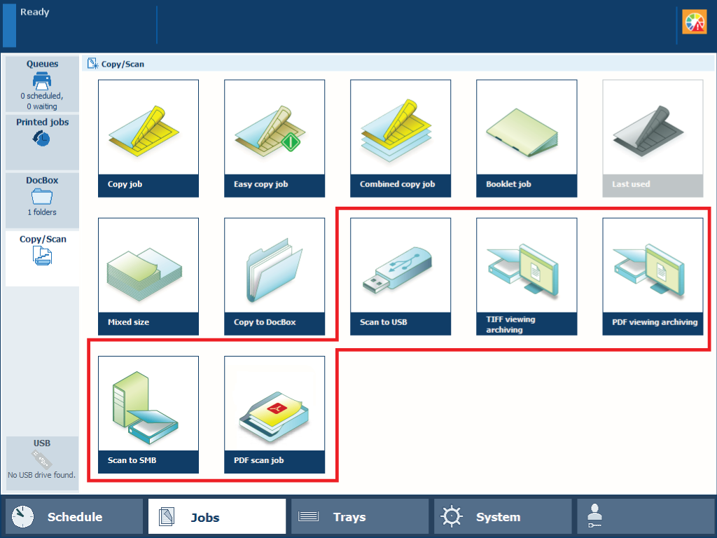 The following tables show the scan job properties you can change. Minimize the scan job definition when you want to do other tasks on the control panel.