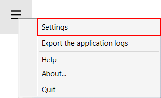 Para alterar as definições vá para o menu e clique em [Definições]. Consulte Instalar o PRISMAguide XL Connector, para encontrar mais informações sobre a configuração das definições.