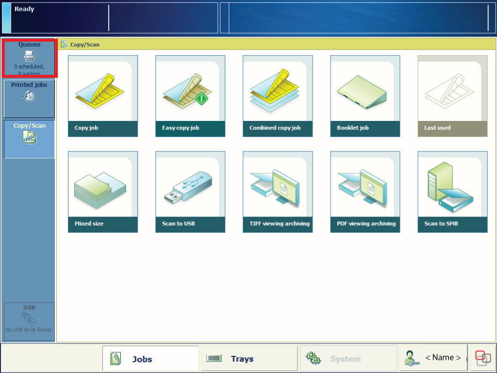 PRISMAsyncを押し、コピー/スキャン画面に切り替えます。