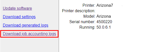 For every job that is finished a record is added to the account log file. You can download the file via a web page on your computer and check the properties and counters of your job.