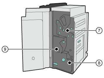 Empileur/agrafeuse sans unité de fabrication de brochures (vue intérieure) |