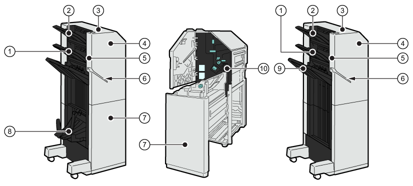Укладчик/сшиватель с брошюровщиком (Booklet Finisher-AC ), лоток для отходов перфорации и стандартный укладчик/сшиватель без брошюровщика (Staple Finisher-AC )|