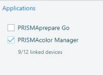 PRISMAcolor Manager에 장치를 할당하기 전에 주의해야 할 점은 이 연결을 끊을 수 없다는 것입니다. 한번 할당에 사용된 라이선스는 재사용할 수 없습니다. 구독 장을 참조하십시오.