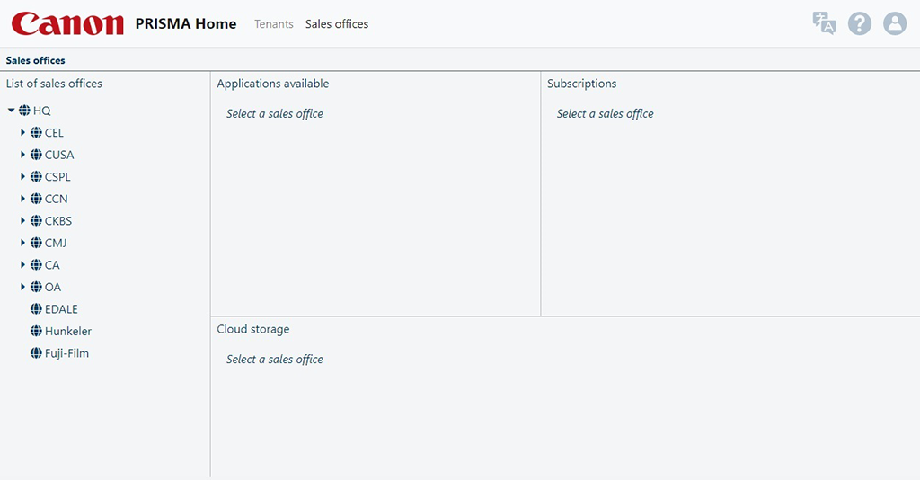 La aplicación PRISMA Home se divide en 2 áreas principales: [Inquilinos] y [oficinas de ventas].