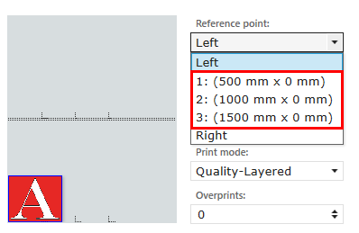 There are two reference points for each zone, one on the left and one on the right. You can also define three custom reference points to mark a specific position on the table. In the Job Information panel you can select which reference point must be used to define the offset values.