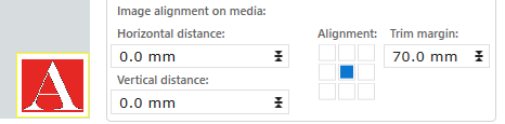 Select a position in the [Alignment] icon to align the image on the media. The horizontal and vertical distance are related to the selected alignment.