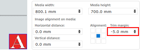 The trim margin is related to the media size, not to the image size. Always check the preview. Depending on the alignment settings the outcome can be very different.