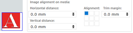 Når Position på medie er OFF, kan du kun indstille offsetværdierne til positionering af billedet.