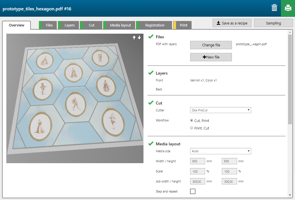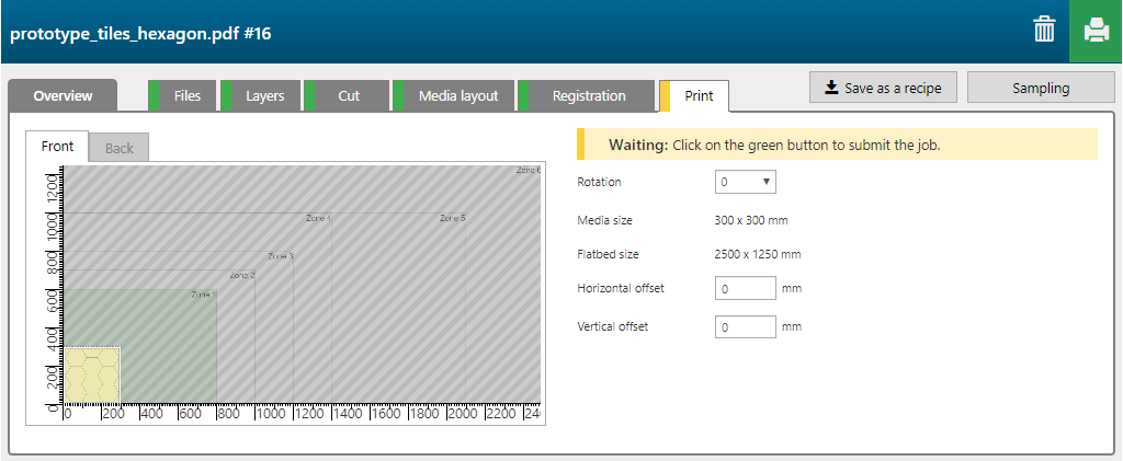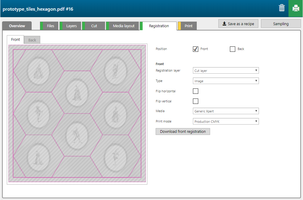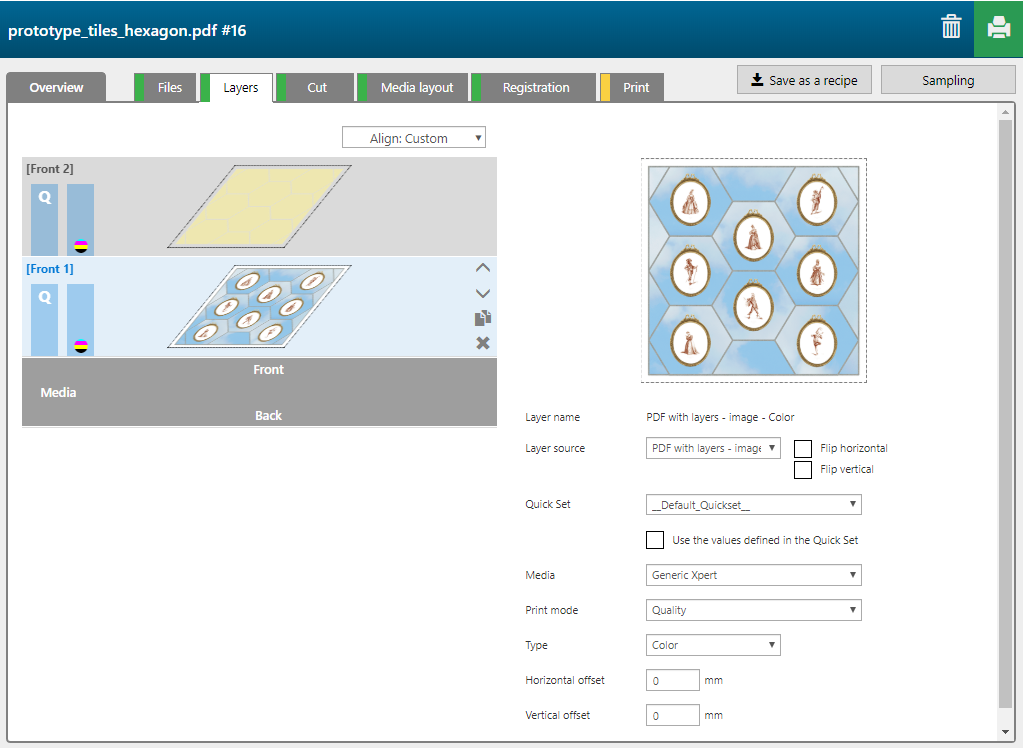 The 'Prototype tiles' recipe contains 2 layers, printed on the front side of the media.
