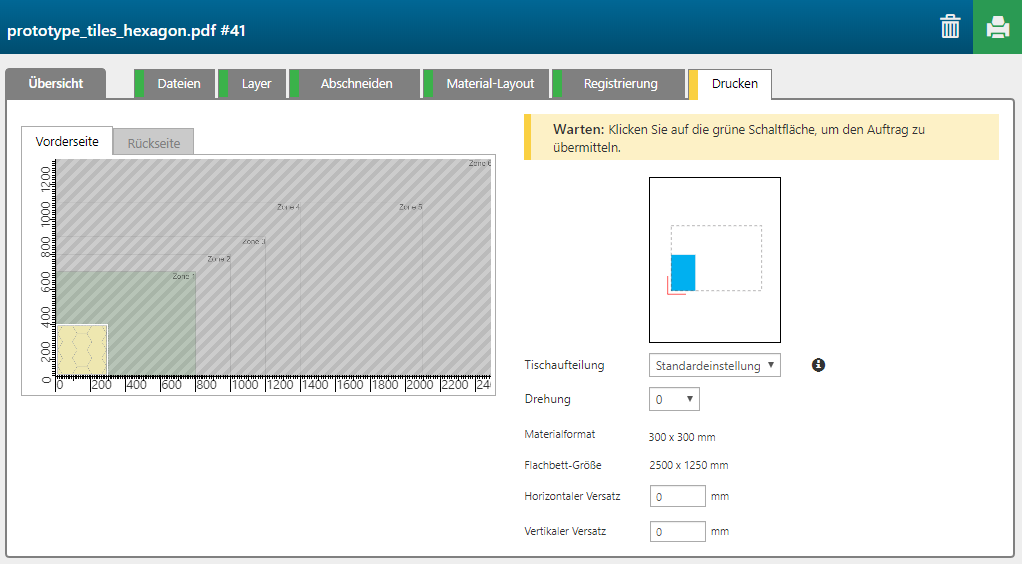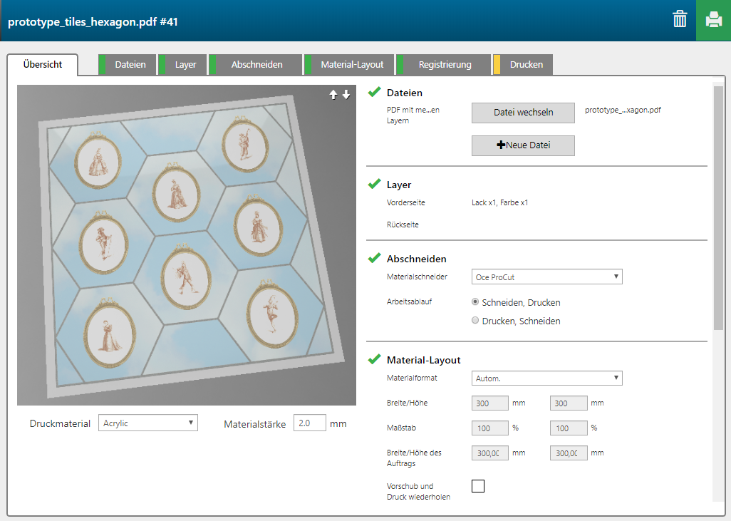 Drucken des Anwendungsdesigns 'Prototype tiles'
