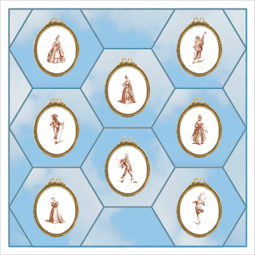 Hierbei handelt es sich um ein Anwendungsdesign, bei dem zuerst geschnitten und dann gedruckt wird: Zunächst wird eine Lücke zwischen den Kacheln graviert, anschließend wird das Bild dann auf die Kacheln gedruckt. Im Ergebnis ist zwischen den Kacheln keine weiße Lücke sichtbar, sondern es entsteht der Eindruck, dass es sich um echte Kacheln handeln würde. Nach dem Zuschneiden können Sie den Schnitt-Layer zum Registrieren des Anwendungsdesigns auf dem Tisch Ihres Arizona Druckers verwenden.