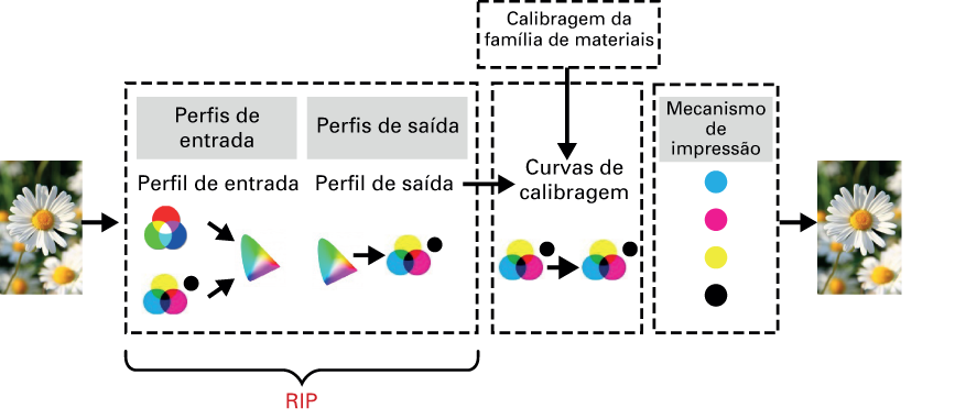 A calibragem é muito importante para manter uma qualidade elevada de reprodução das cores. O ambiente do sistema de impressão influencia a qualidade de impressão. A temperatura e a humidade constantes são essenciais para uma saída de cor consistente.