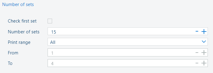 Количество комплектовВведите количество комплектов. Можно также использовать кнопки "+" и "–".